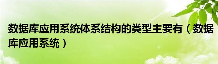 数据库应用系统体系结构的类型主要有(数据库应用系统)