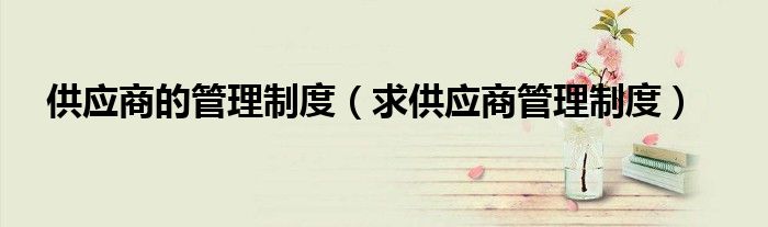 关于供应商的管理制度,求供应商管理制度这个很多人还不知道,今天菲菲来为大家解答以上的问题,现在让我们一起来看看吧!