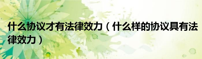 关于什么协议才有法律效力,什么样的协议具有法律效力这个很多人还不知道,今天菲菲来为大家解答以上的问题,现在让我们一起来看看吧!