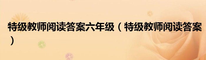 关于特级教师阅读答案六年级,特级教师阅读答案这个很多人还不知道,今天菲菲来为大家解答以上的问题,现在让我们一起来看看吧!