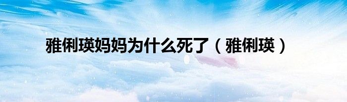 关于雅俐瑛妈妈为什么死了,雅俐瑛这个很多人还不知道,今天菲菲来为大家解答以上的问题,现在让我们一起来看看吧!