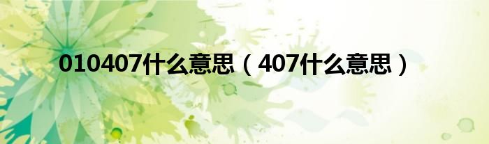 大家好,小晋来为大家解答以下问题,关于010407什么意思,407什么意思很多人还不知道,今天让我们一起来看看吧!