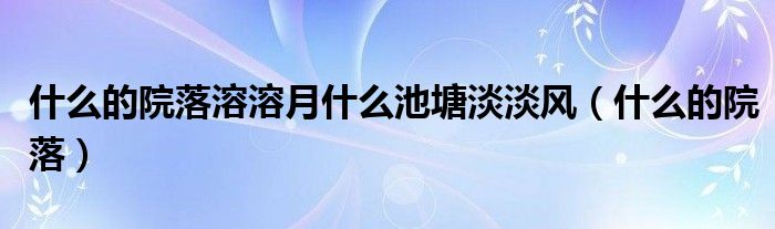 大家好,小晋来为大家解答以下问题,关于什么的院落溶溶月什么池塘淡淡风,什么的院落很多人还不知道,今天让我们一起来看看吧!
