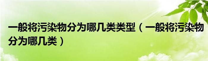 大家好,小晋来为大家解答以下问题,关于一般将污染物分为哪几类类型,一般将污染物分为哪几类很多人还不知道,今天让我们一起来看看吧!