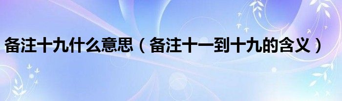 大家好,小晋来为大家解答以下问题,关于备注十九什么意思,备注十一到十九的含义很多人还不知道,今天让我们一起来看看吧!