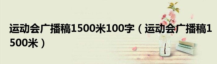 关于运动会广播稿1500米100字,运动会广播稿1500米这个很多人还不知道,今天菲菲来为大家解答以上的问题,现在让我们一起来看看吧!