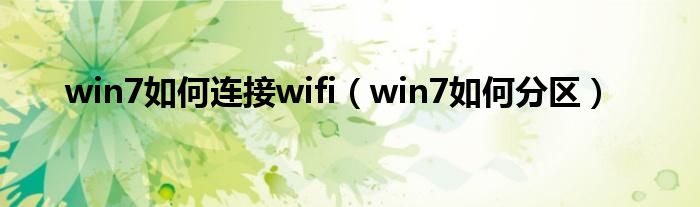 大家好,小飞来为大家解答以上问题,win7如何连接wifi,win7如何分区很多人还不知道,现在让我们一起来看看吧!