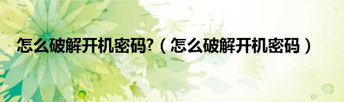 这就是破解电脑开机密码的全部内容。希望能帮到你!