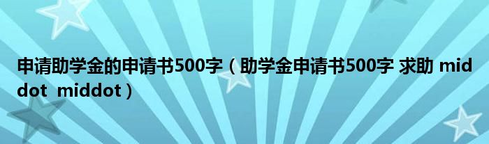 关于申请助学金的申请书500字,助学金申请书500字 求助 middot middot这个很多人还不知道,今天菲菲来为大家解答以上的问题,现在让我们一起来看看吧!