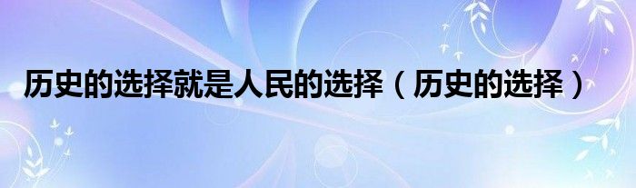 关于历史的选择就是人民的选择,历史的选择这个很多人还不知道,今天菲菲来为大家解答以上的问题,现在让我们一起来看看吧!