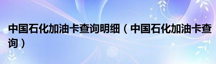大家好,小飞来为大家解答以上问题,中国石化加油卡查询明细,中国石化加油卡查询很多人还不知道,现在让我们一起来看看吧!