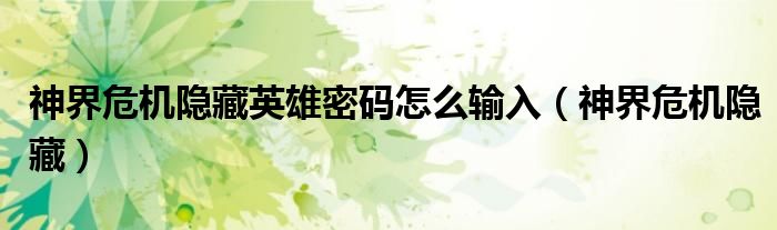 神界危机隐藏英雄密码怎么输入,神界危机隐藏很多人还不知道,乐乐来为大家解答以上问题,现在让我们一起来看看吧!