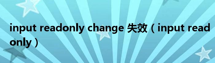大家好,雨雨来为大家解答以上问题,input readonly change 失效,input readonly很多人还不知道,现在让我们一起来看看吧!