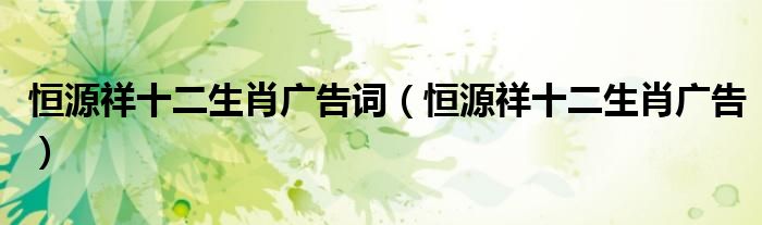 恒源祥十二生肖广告词(恒源祥十二生肖广告)
