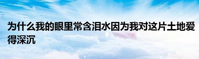 关于为什么我的眼里常含泪水因为我对这片土地爱得深沉这个很多人还不知道,今天菲菲来为大家解答以上的问题,现在让我们一起来看看吧!