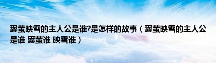 关于囊萤映雪的主人公是谁?是怎样的故事,囊萤映雪的主人公是谁 囊萤谁 映雪谁这个很多人还不知道,今天菲菲来为大家解答以上的问题,现在让我们一起来看看吧!