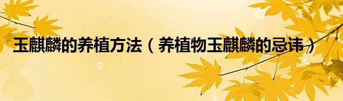 大家好,小晋来为大家解答以下问题,关于玉麒麟的养植方法,养植物玉麒麟的忌讳很多人还不知道,今天让我们一起来看看吧!