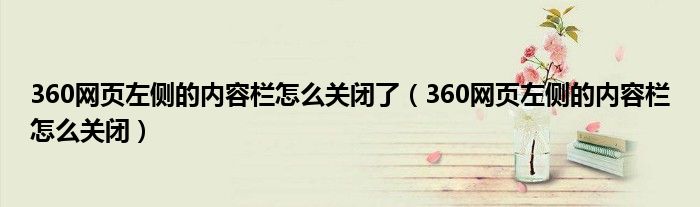 关于360网页左侧的内容栏怎么关闭了,360网页左侧的内容栏怎么关闭这个很多人还不知道,今天菲菲来为大家解答以上的问题,现在让我们一起来看看吧!