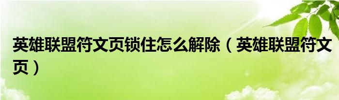 英雄联盟符文页锁住怎么解除(英雄联盟符文页)