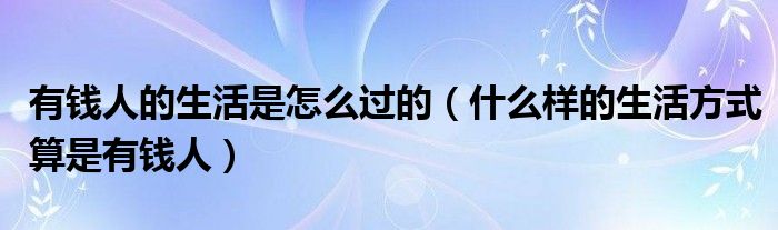 关于有钱人的生活是怎么过的,什么样的生活方式算是有钱人这个很多人还不知道,今天菲菲来为大家解答以上的问题,现在让我们一起来看看吧!