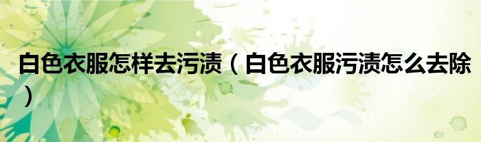 关于白色衣服怎样去污渍,白色衣服污渍怎么去除这个很多人还不知道,今天菲菲来为大家解答以上的问题,现在让我们一起来看看吧!