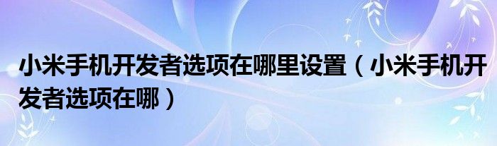 大家好,小晋来为大家解答以下问题,关于小米手机开发者选项在哪里设置,小米手机开发者选项在哪很多人还不知道,今天让我们一起来看看吧!