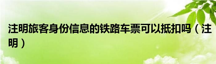 关于注明旅客身份信息的铁路车票可以抵扣吗,注明这个很多人还不知道,今天菲菲来为大家解答以上的问题,现在让我们一起来看看吧!