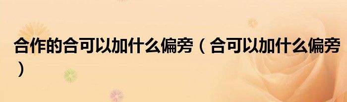 大家好,小晋来为大家解答以下问题,关于合作的合可以加什么偏旁,合可以加什么偏旁很多人还不知道,今天让我们一起来看看吧!