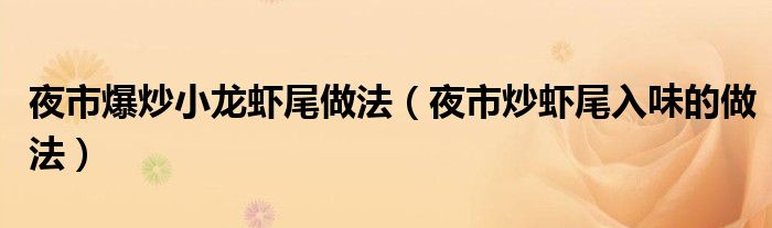 大家好,小晋来为大家解答以下问题,关于夜市爆炒小龙虾尾做法,夜市炒虾尾入味的做法很多人还不知道,今天让我们一起来看看吧!