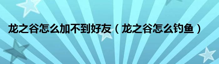 龙之谷怎么加不到好友,龙之谷怎么钓鱼很多人还不知道,乐乐来为大家解答以上问题,现在让我们一起来看看吧!