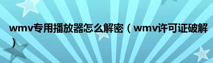 大家好,雨雨来为大家解答以上问题,wmv专用播放器怎么解密,wmv许可证破解很多人还不知道,现在让我们一起来看看吧!
