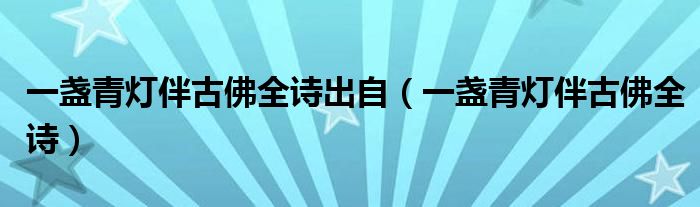 大家好,小晋来为大家解答以下问题,关于一盏青灯伴古佛全诗出自,一盏青灯伴古佛全诗很多人还不知道,今天让我们一起来看看吧!