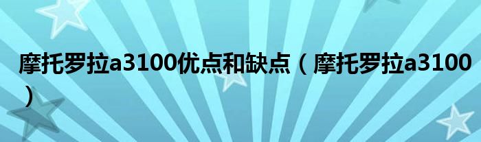 大家好,雨雨来为大家解答以上问题,摩托罗拉a3100优点和缺点,摩托罗拉a3100很多人还不知道,现在让我们一起来看看吧!