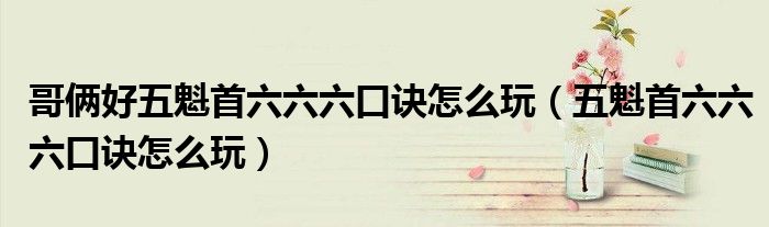 哥俩好五魁首六六六口诀怎么玩(五魁首六六六口诀怎么玩)