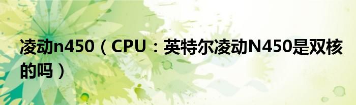 1,CPU:英特尔凌动N450是双核的吗??? :英特尔(凌动)CPU性能很差的。我这里有一台联想S10-3C上网本,CPU是凌动N455,感觉性能很差。