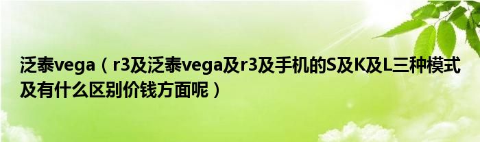 大家好,小常来为大家解答以上问题。泛泰vega,r3及泛泰vega及r3及手机的S及K及L三种模式及有什么区别价钱方面呢很多人还不知道,现在让我们一起来看看吧!