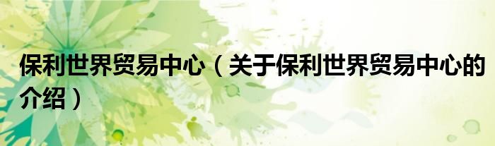 1、保利世界贸易中心写字楼由保利房地产(集团)股份有限公司开发的写字楼。