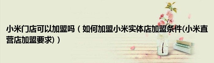 大家好,小常来为大家解答以上问题。小米门店可以加盟吗,如何加盟小米实体店加盟条件(小米直营店加盟要求)很多人还不知道,现在让我们一起来看看吧!