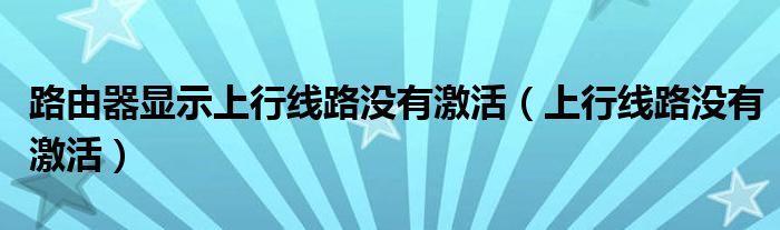 大家好,小晋来为大家解答以下问题,关于路由器显示上行线路没有激活,上行线路没有激活很多人还不知道,今天让我们一起来看看吧!