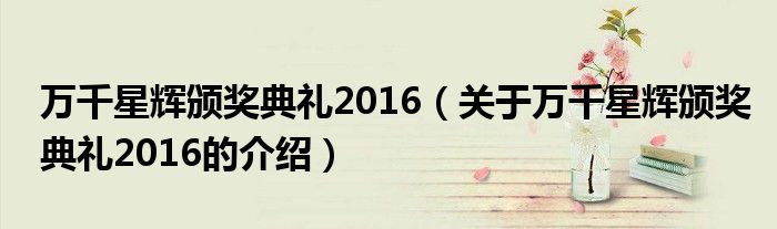 大家好,今天小乐来为大家解答以上的问题。万千星辉颁奖典礼2016,关于万千星辉颁奖典礼2016的介绍很多人还不知道,现在让我们一起来看看吧!