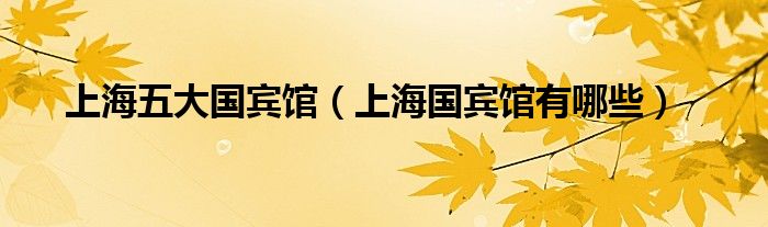 关于上海五大国宾馆,上海国宾馆有哪些这个很多人还不知道,今天菲菲来为大家解答以上的问题,现在让我们一起来看看吧!