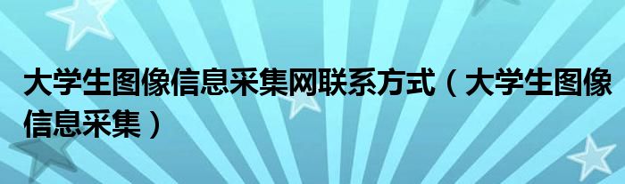关于大学生图像信息采集网联系方式,大学生图像信息采集这个很多人还不知道,今天菲菲来为大家解答以上的问题,现在让我们一起来看看吧!