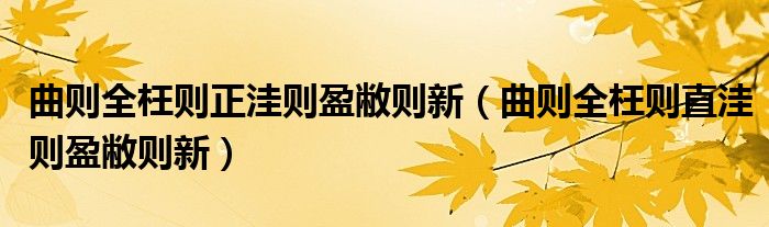 关于曲则全枉则正洼则盈敝则新,曲则全枉则直洼则盈敝则新这个很多人还不知道,今天菲菲来为大家解答以上的问题,现在让我们一起来看看吧!