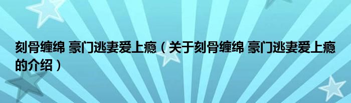 大家好,今天小乐来为大家解答以上的问题。刻骨缠绵 豪门逃妻爱上瘾,关于刻骨缠绵 豪门逃妻爱上瘾的介绍很多人还不知道,现在让我们一起来看看吧!