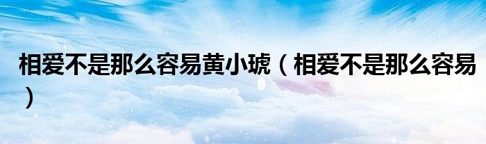 大家好,雨雨来为大家解答以上问题,相爱不是那么容易黄小琥,相爱不是那么容易很多人还不知道,现在让我们一起来看看吧!