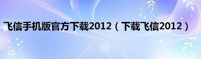 2、软件名称: 飞信2012官方正式版 软件版本: 奥运版 软件大小: 32.82MB 软件授权: 免费 适用平台: Win9X Win2000 WinXP Win2003 Vista Win7 下载地址: //dl.pconline.com.cn/download/90696.html