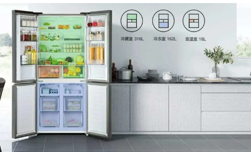 小米米家冰箱十字四门尊享版的尺寸为深690mm、宽910mm、高1902mm。由于它的设计,它不会在厨房里占据太多空间,至少在视觉上是这样。通过 90° 直角门开口,可以将抽屉拉直以便顺利取出。金属背板传导360°环绕风,避免食材直吹和水分干燥。