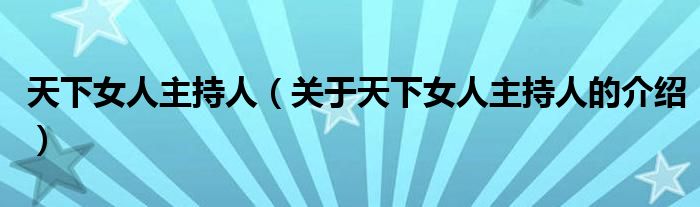 大家好,今天小乐来为大家解答以上的问题。天下女人主持人,关于天下女人主持人的介绍很多人还不知道,现在让我们一起来看看吧!