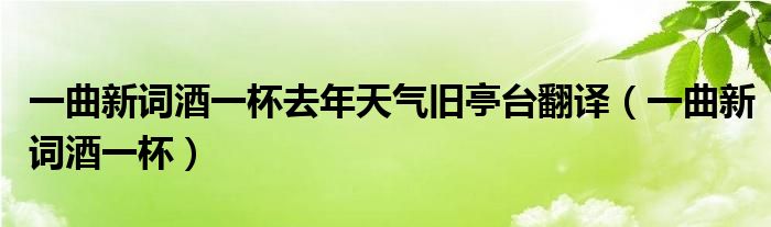 关于一曲新词酒一杯去年天气旧亭台翻译,一曲新词酒一杯这个很多人还不知道,今天菲菲来为大家解答以上的问题,现在让我们一起来看看吧!