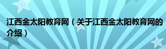 江西金太阳教育网(关于江西金太阳教育网的介绍)